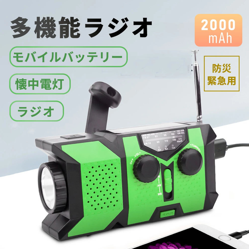 RISUKAI 多機能防災ラジオ 防災ラジオ 手回し充電 LED懐中電灯付き ソーラー・手回し・USB充電対応 スマホ充電 災害用モバイルバッテリー 緊急電源 読書ランプ付 AM/FM携帯ラジオ SOS緊急警報 防災グッズ 大容量電池 アウトドア対応 防水 ポータブルラジオ 地震 震災 津波 台風などの緊急に対応 内置2000mAh電池 予備電池 iPhone Android テーブルライト 手回し充電器 ストラップ付き 携帯便利 緊急用 小型ラジオ 震災グッズ 送料無料